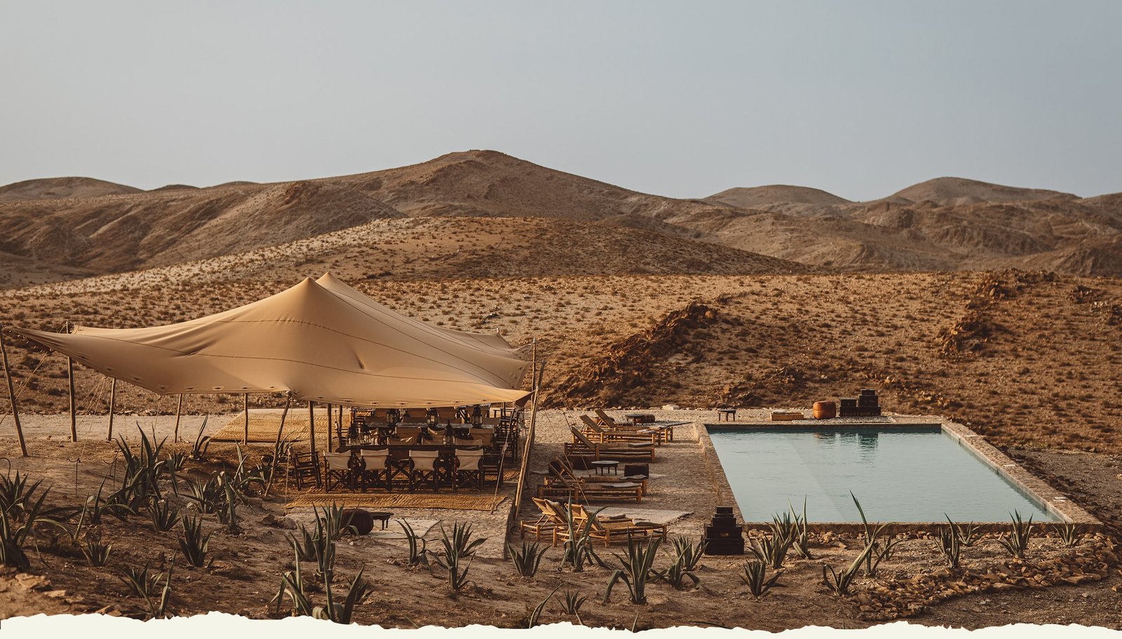 Le camp propose également une piscine avec vue panoramique, un restaurant servant une cuisine marocaine raffinée et des soirées animées autour du feu. Les prix débutent généralement autour de 120 € à 200 € la nuit selon la formule choisie.
