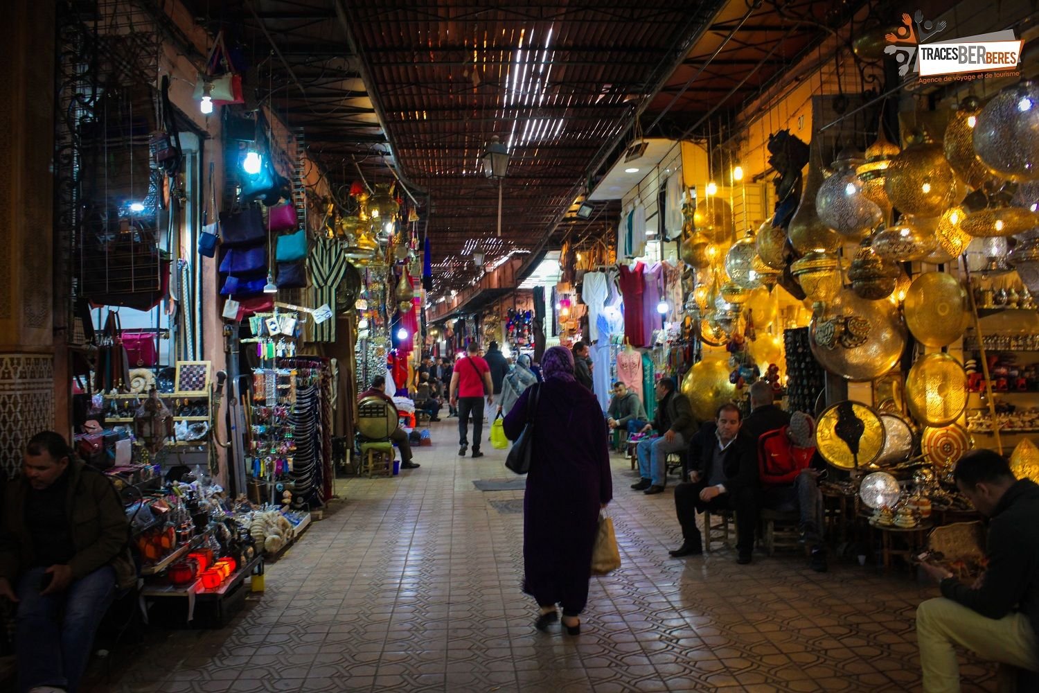 Dans ces passages étroits et vibrants, qui rappellent l’organisation des anciennes cités marchandes, vous trouverez une multitude de commerces spécialisés dans l’artisanat local : maroquinerie, tapis berbères, poteries, lanternes en cuivre, bijoux, épices ou encore vêtements traditionnels. Entre deux achats, vous pourrez observer les artisans au travail, découvrir des fondouks historiques ou faire une pause autour d’un thé à la menthe sur une terrasse panoramique.