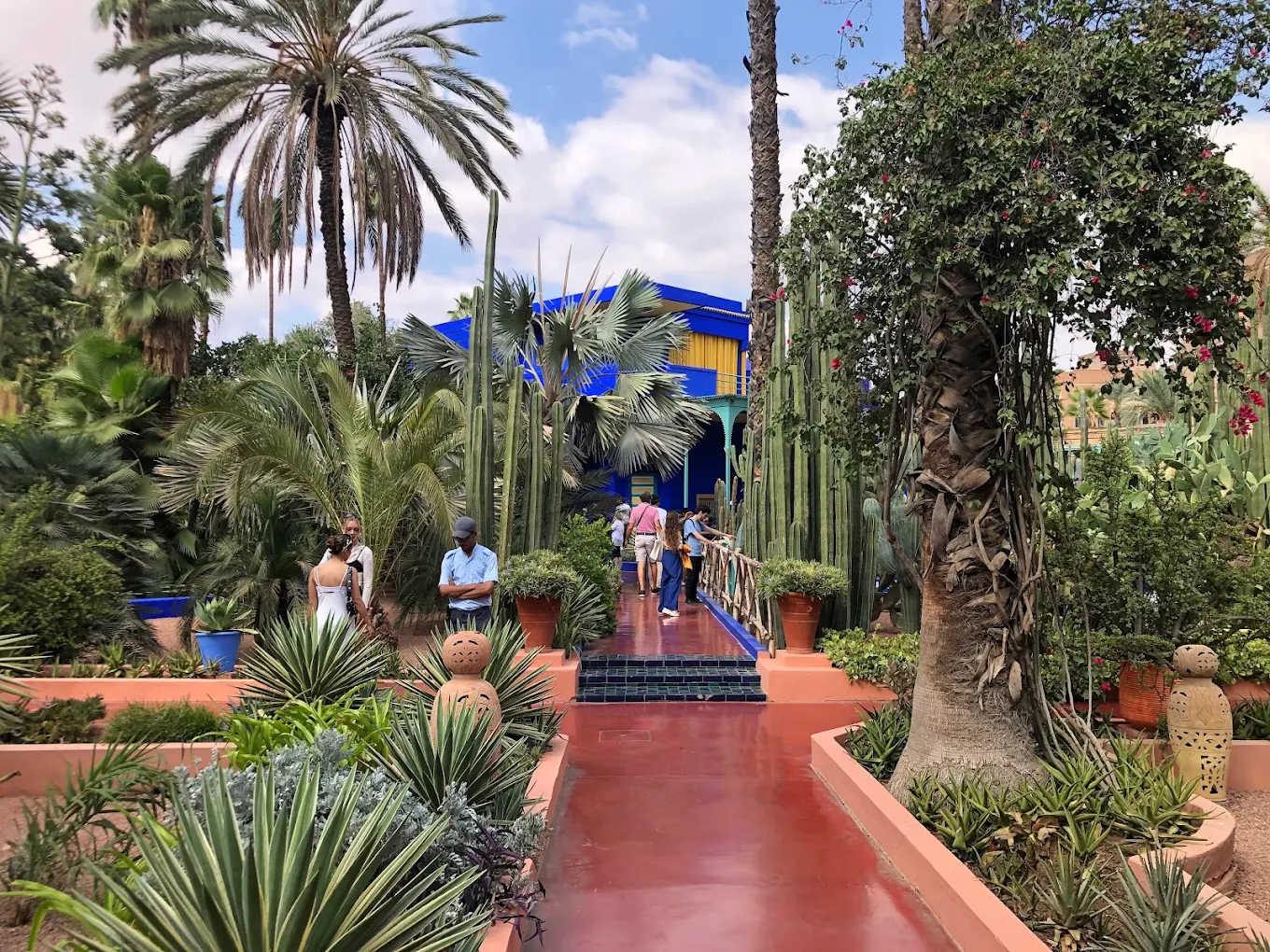 Impossible de visiter le jardin sans être frappé par son bleu emblématique. Cette couleur électrique contraste magnifiquement avec les verts luxuriants de la végétation et les jaunes éclatants des pots en céramique. Les bâtiments peints de ce bleu cobalt créent un cadre photographique unique qui fait le bonheur des visiteurs du monde entier.