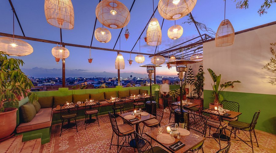 Installé confortablement, vous pourrez savourer des cocktails signature, partager des tapas revisitées ou déguster des plats aux inspirations marocaines et internationales. Dès 19h, l’ambiance monte progressivement avec un DJ, et en fin de soirée, la terrasse devient l’un des lieux les plus festifs de la médina. Le restaurant est ouvert tous les jours jusqu’à tard dans la nuit. Comme pour la plupart des rooftops tendance, une tenue chic est recommandée pour y accéder.